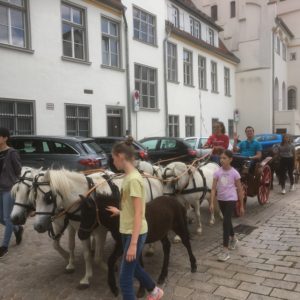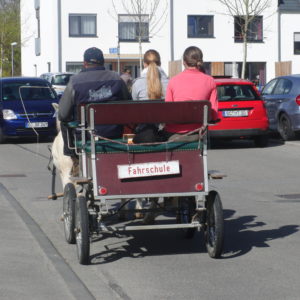 Wie in vielen anderen Bereichen der Jugendarbeit wurden auch bei den Ponys und Ponymädels in den letzten Jahren die Anforderungen an Aufsicht und Sicherheit größer. Mit 12 einfach allein wild durch Gelände preschen – das geht heute nicht mehr. So gehören jetzt auch Erwachsene zum Team, alles ursprünglich auch Ponymädels, die die Jüngeren unterstützen. Die Ponybeauftragte Beate Depfenhart, selbst Fahrrichterin, führte Fahrkurse für die älteren Teammitglieder ein. Zusätzliche Kutschen und Geschirre wurden angeschafft, so dass Kutsche und Reiter regelmäßig gemeinsam ins Gelände gehen können. Neben der Aufsicht hat das den Vorteil, dass die Ponys viel routinierter im Fahren geworden sind. Unterstützung durch Eltern war früher schon wichtig, heute sind die Eltern jedoch mehr direkt miteinbezogen. So hat alles etwas mehr Ordnung- aber die Mädels und „ihre“ Ponys immer noch jede Menge Spaß miteinander!