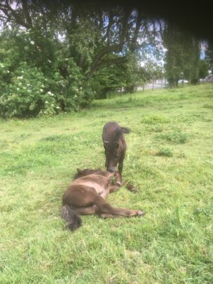Sehr zufrieden nach diesem spannenden Tag genießen Bounty, Balisto und ihre Mütter jetzt wieder die Koppel.