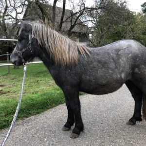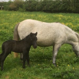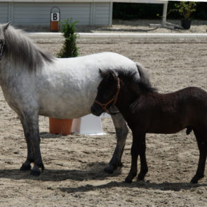 Balisto ist ein sehr lebendiges, hübsches Fohlen. Sein Vater ist hocherfolgreich in der Zucht, er hat mehrere gekörte Söhne und auch im Reit- und Fahrsport erfolgreiche Nachkommen. Balisto kam rabenschwarz zur Welt, aber er wird, wie seine Eltern, ein Schimmel werden. Wir sind gespannt auf seine Entwicklung!
